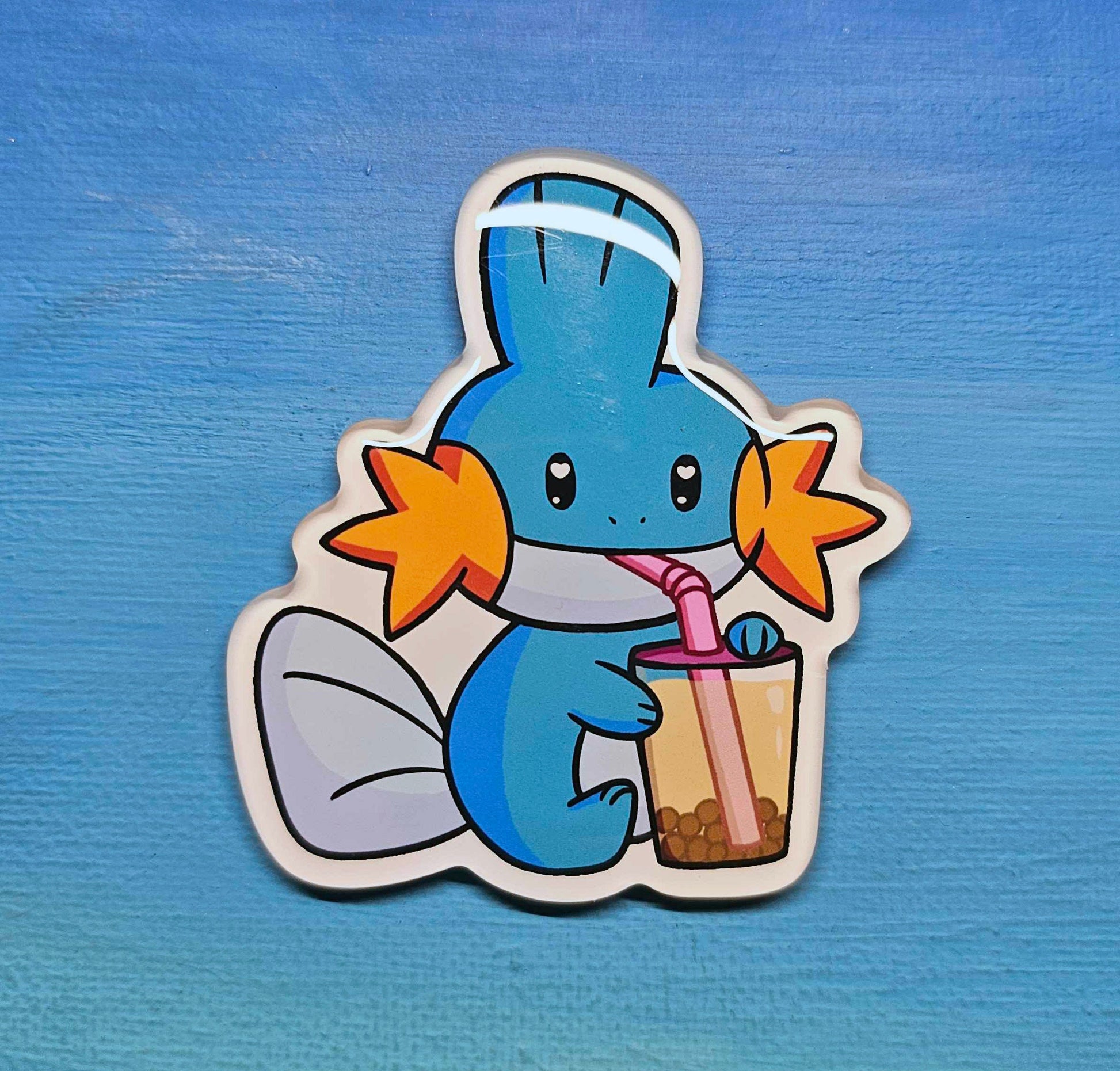 - A sweet treat enjoying 2.5" Mudkip magnet, printed on acrylic with a full magnetic backing