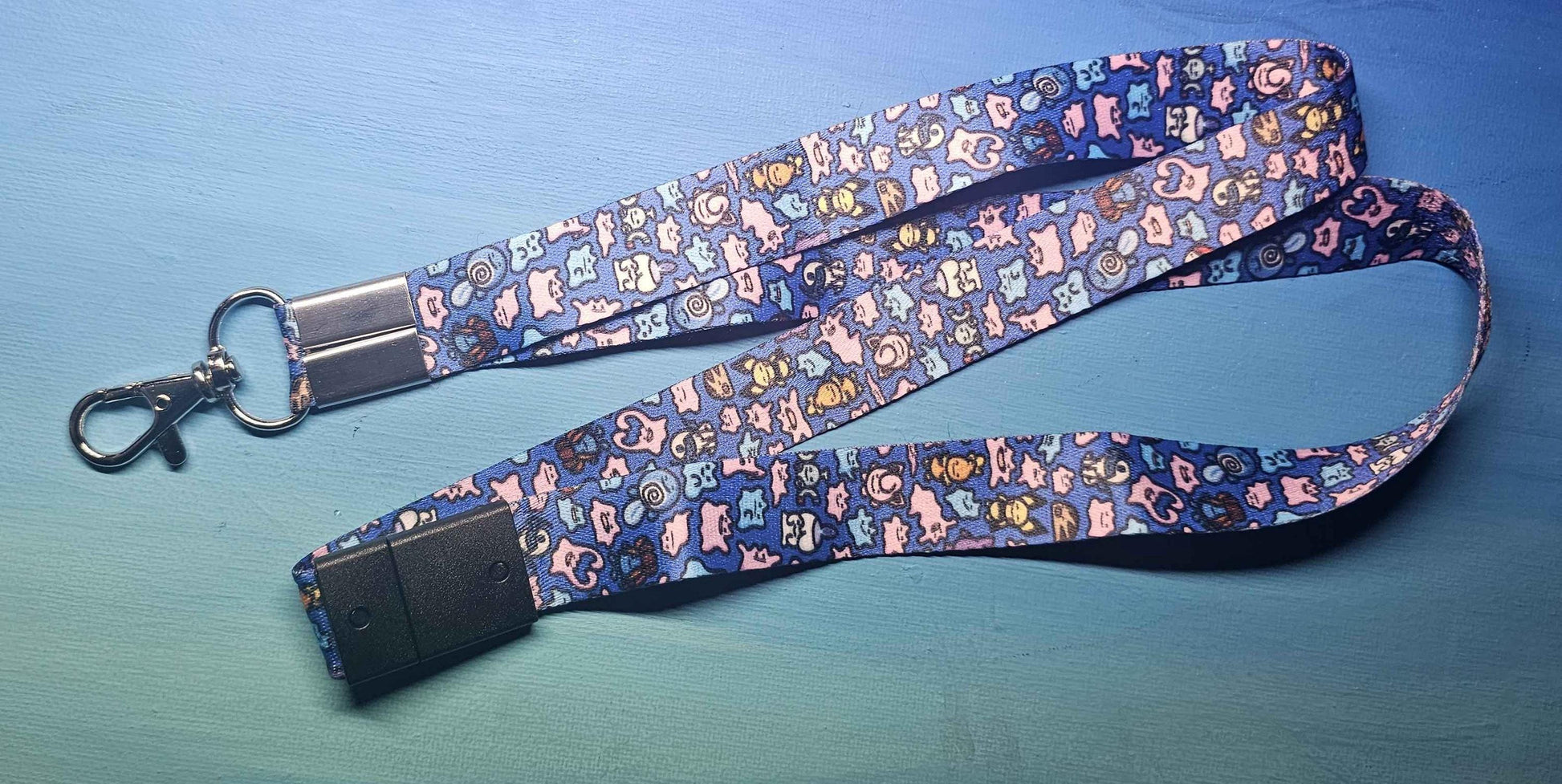 - 2cm wide lanyard that measures 90cm/35in length, comes with a safety break on the top end, and a metal clip closure + lobster clasp on the bottom.