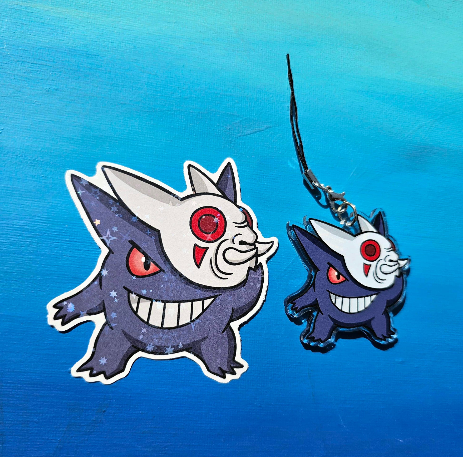 - A cute, spooky, kabuki-wearing double-sided 2" charm, with the shiny variant on one side and the normal colors on the other side