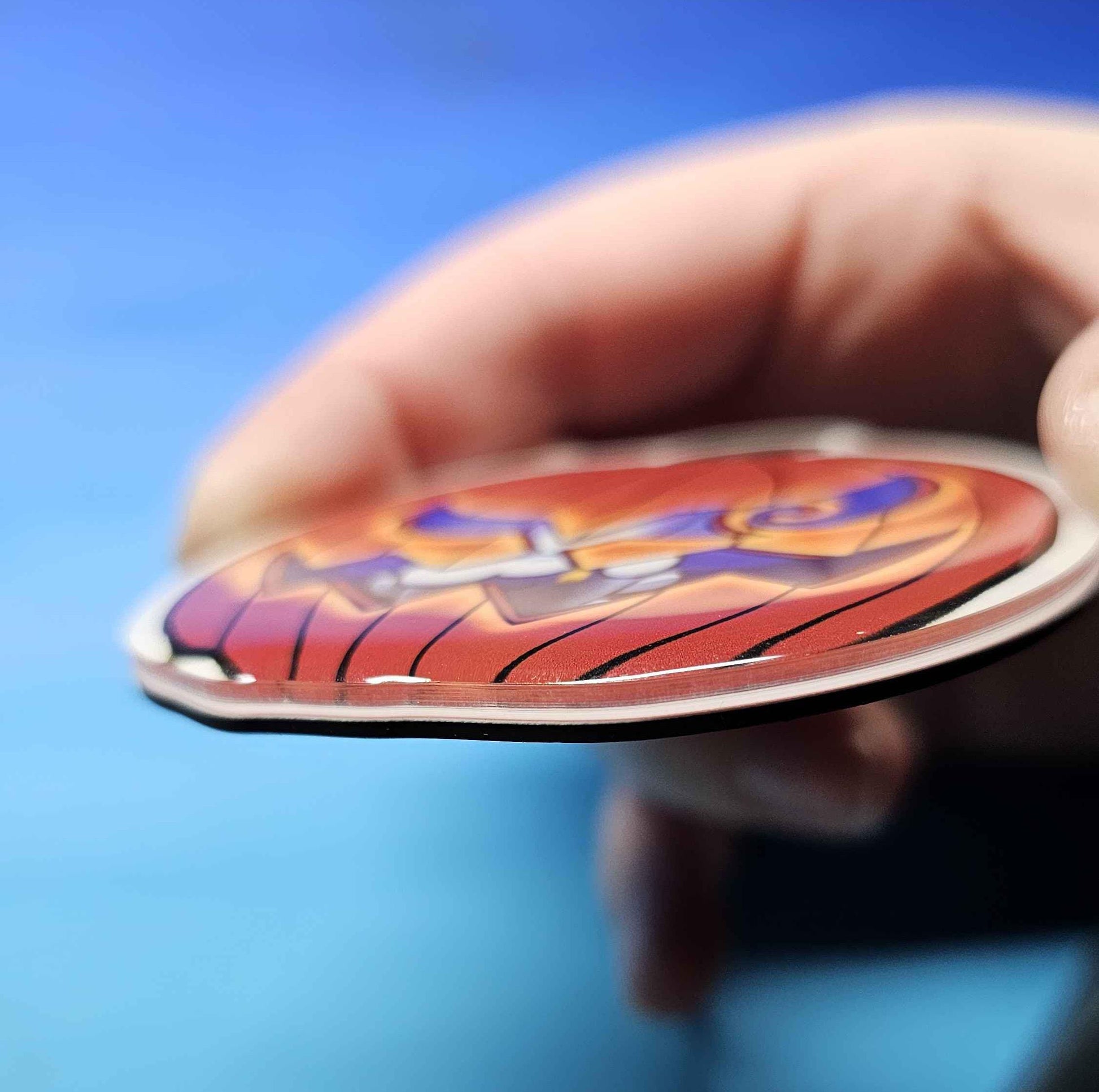 - A super cute lit 2.5" Spiritomb Jack-O'-Lantern w/ Litwick inside magnet, printed on acrylic with a full magnetic backing