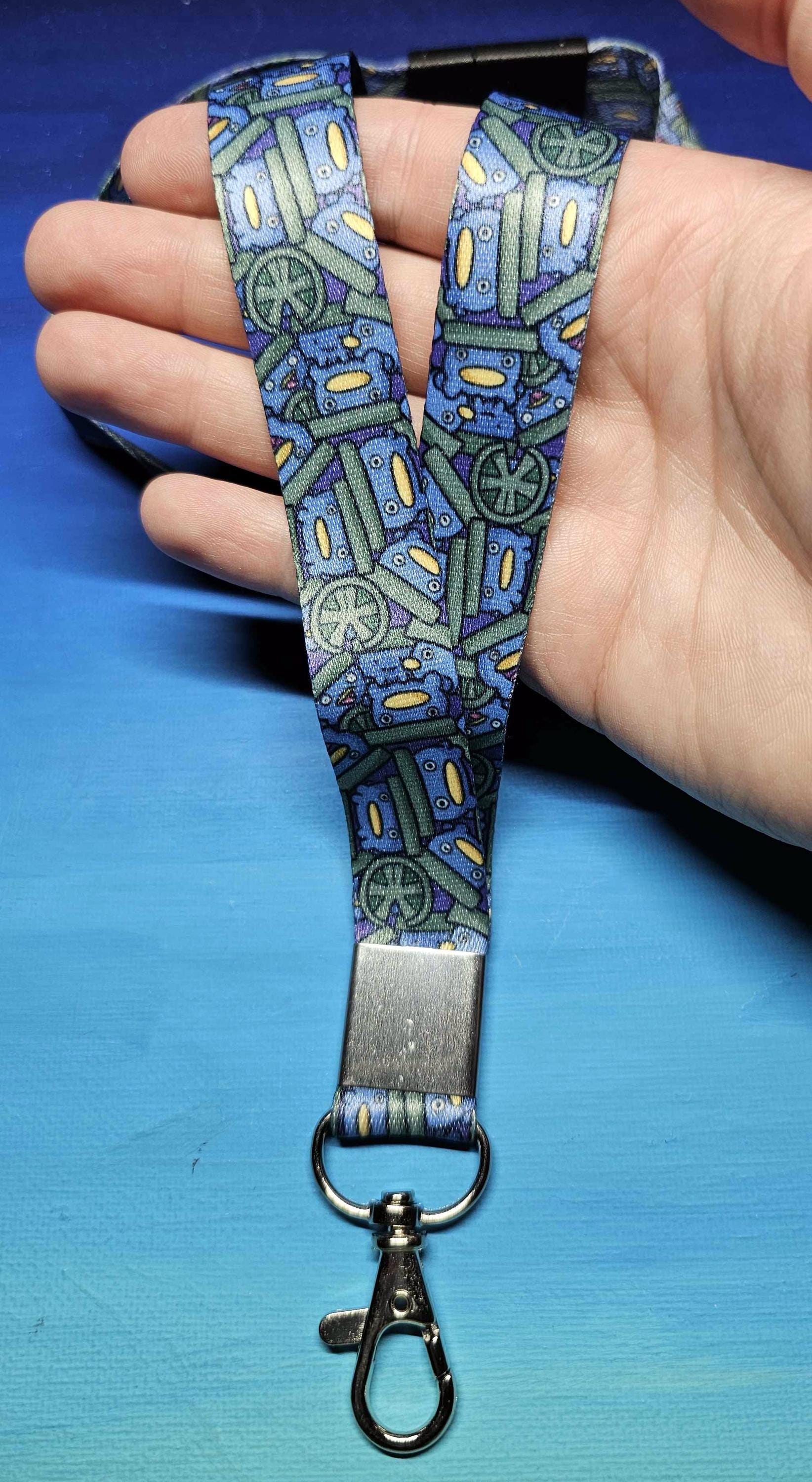 - 2cm wide lanyard that measures 90cm/35in length, comes with a safety break on the top end, and a metal clip closure + lobster clasp on the bottom.