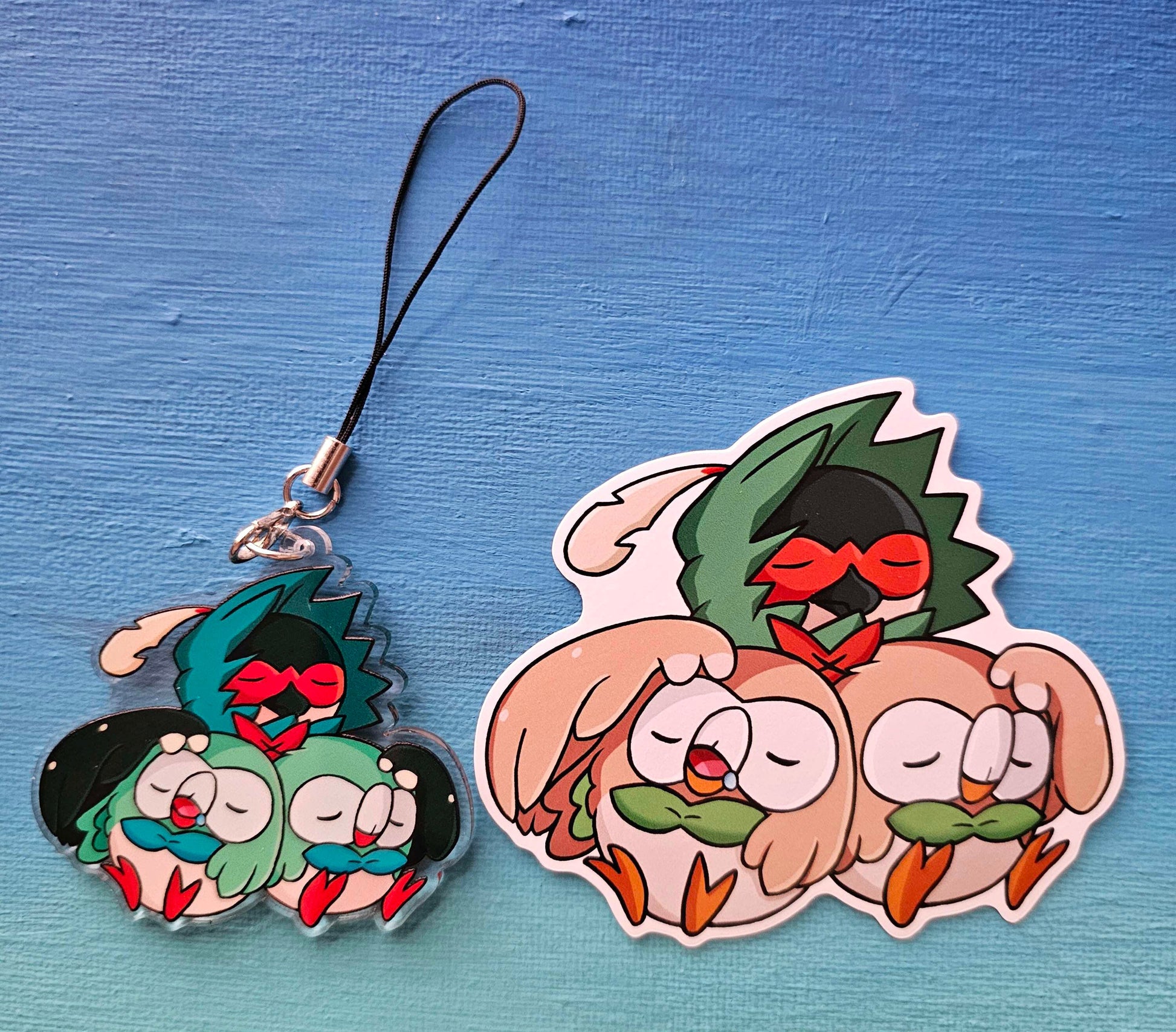 - A sweet and sleepy 3" vinyl sticker of Rowlets with Decidueye!