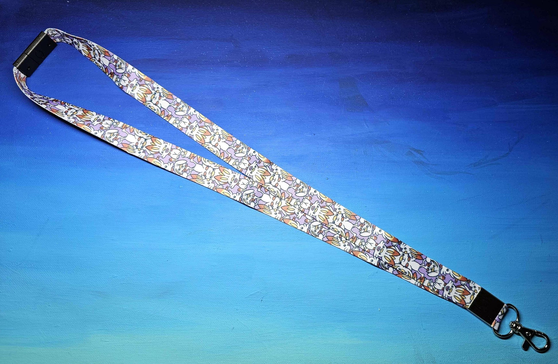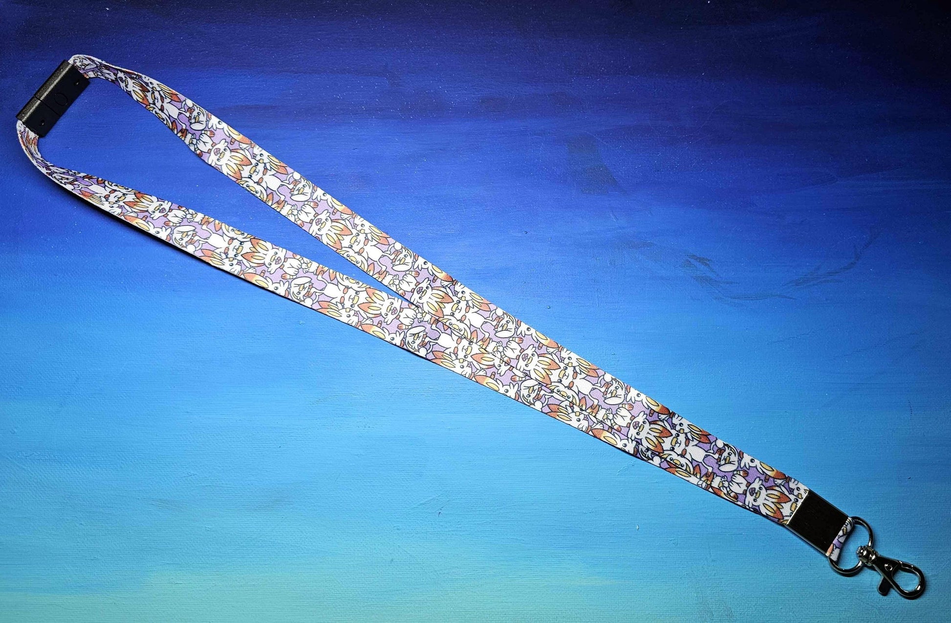 - 2cm wide lanyard that measures 90cm/35in length, comes with a safety break on the top end, and a metal clip closure + lobster clasp on the bottom.