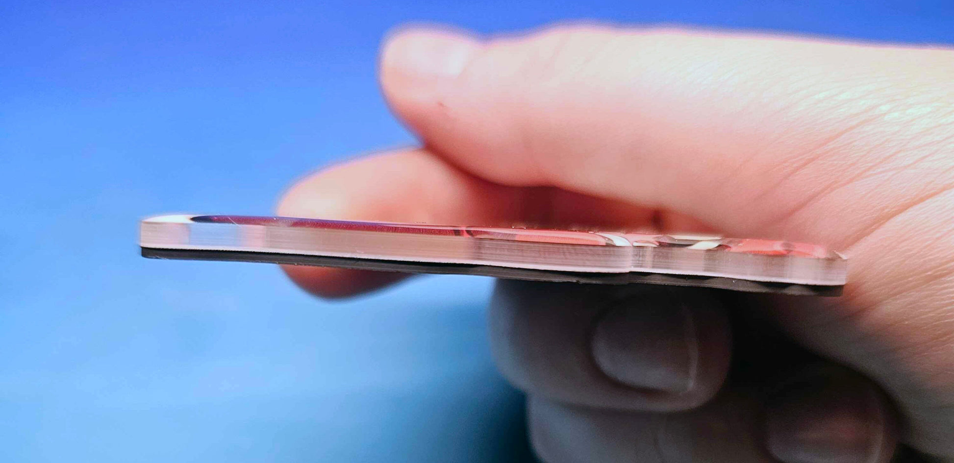 - 3mm thick acrylic with a "broken glass" holographic epoxy dome.