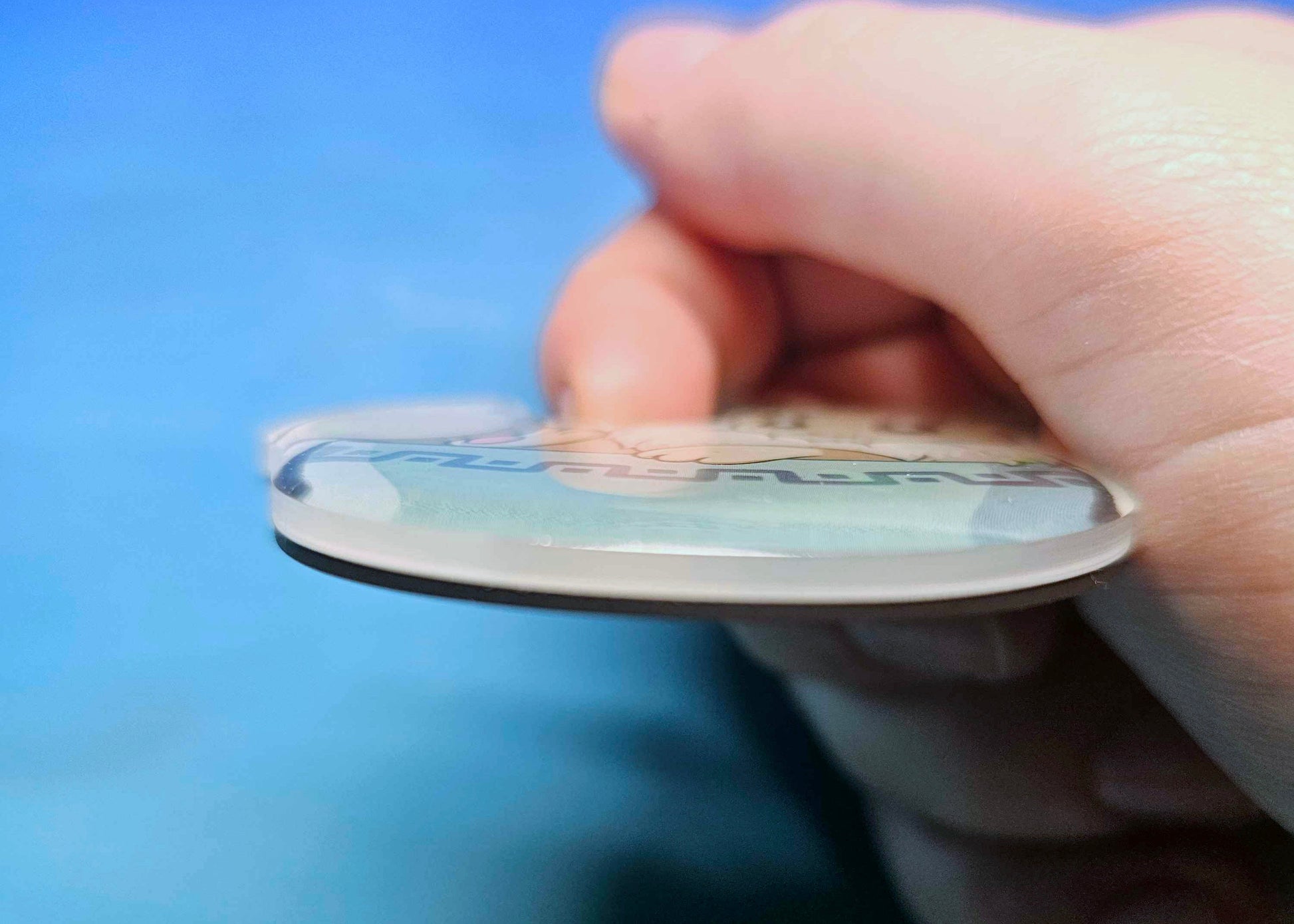 - 3mm thick acrylic with a "broken glass" holographic epoxy dome