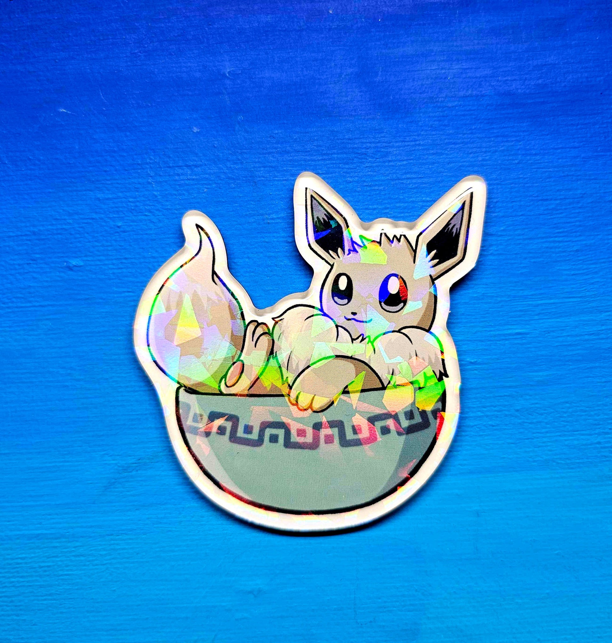 - A super sweet 2.5" Shiny Eevee in a bowl magnet, printed on acrylic with a full magnetic backing
