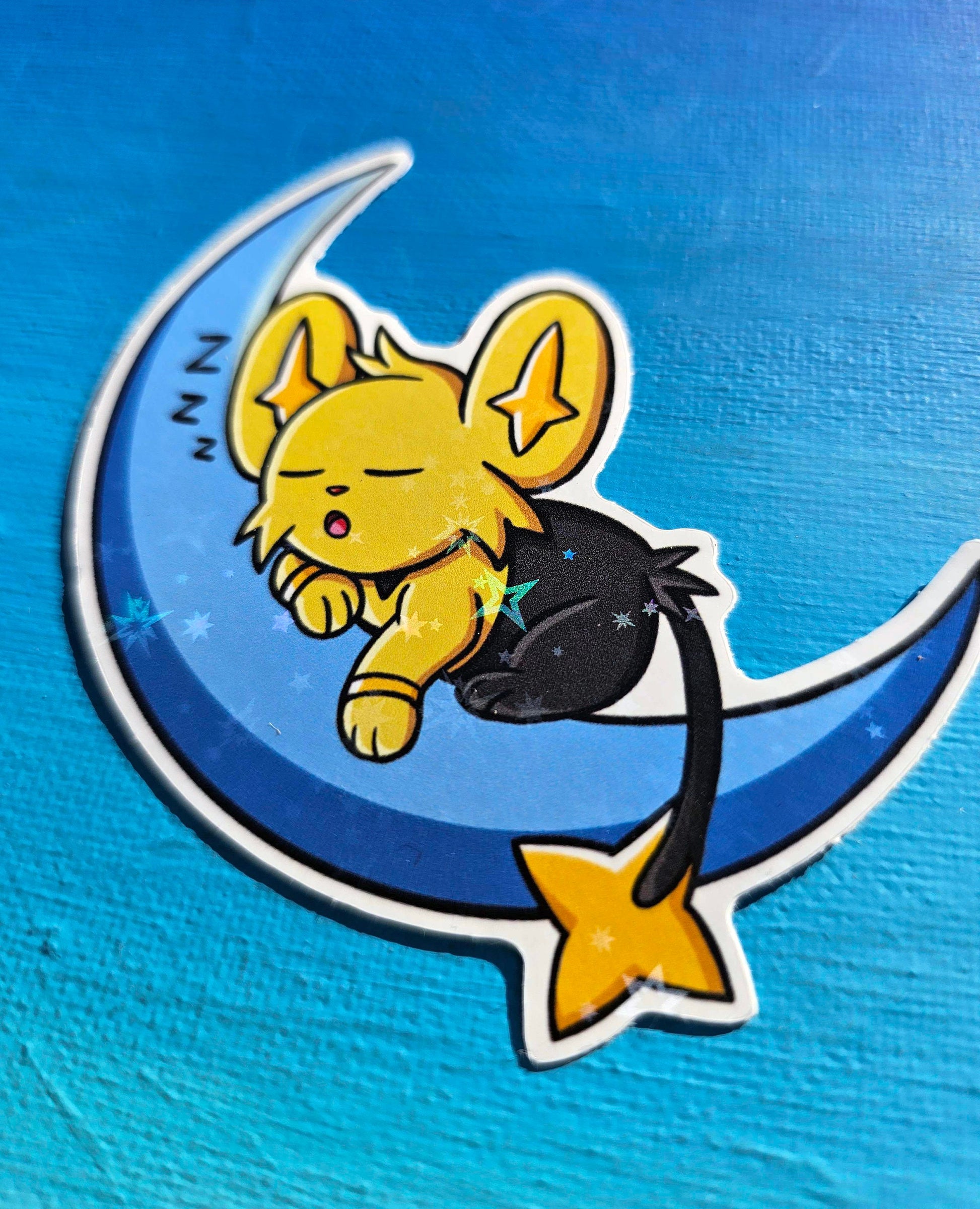 - An adorable, sleepy 3" holographic vinyl sticker of Shiny Shinx resting on a moon.