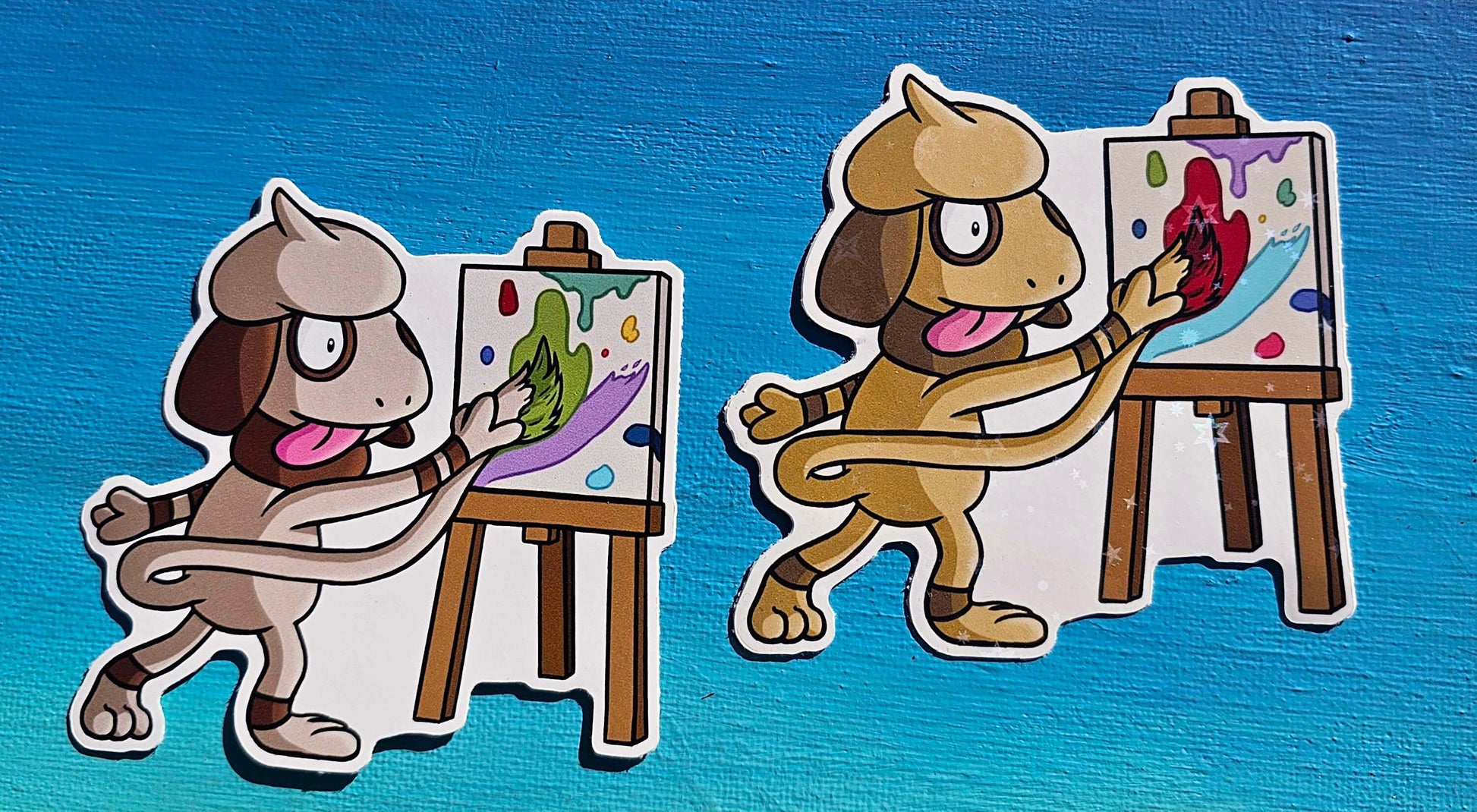 - An artsy, focused 3" holographic vinyl sticker of Shiny Smeargle Painting on a Canvas!