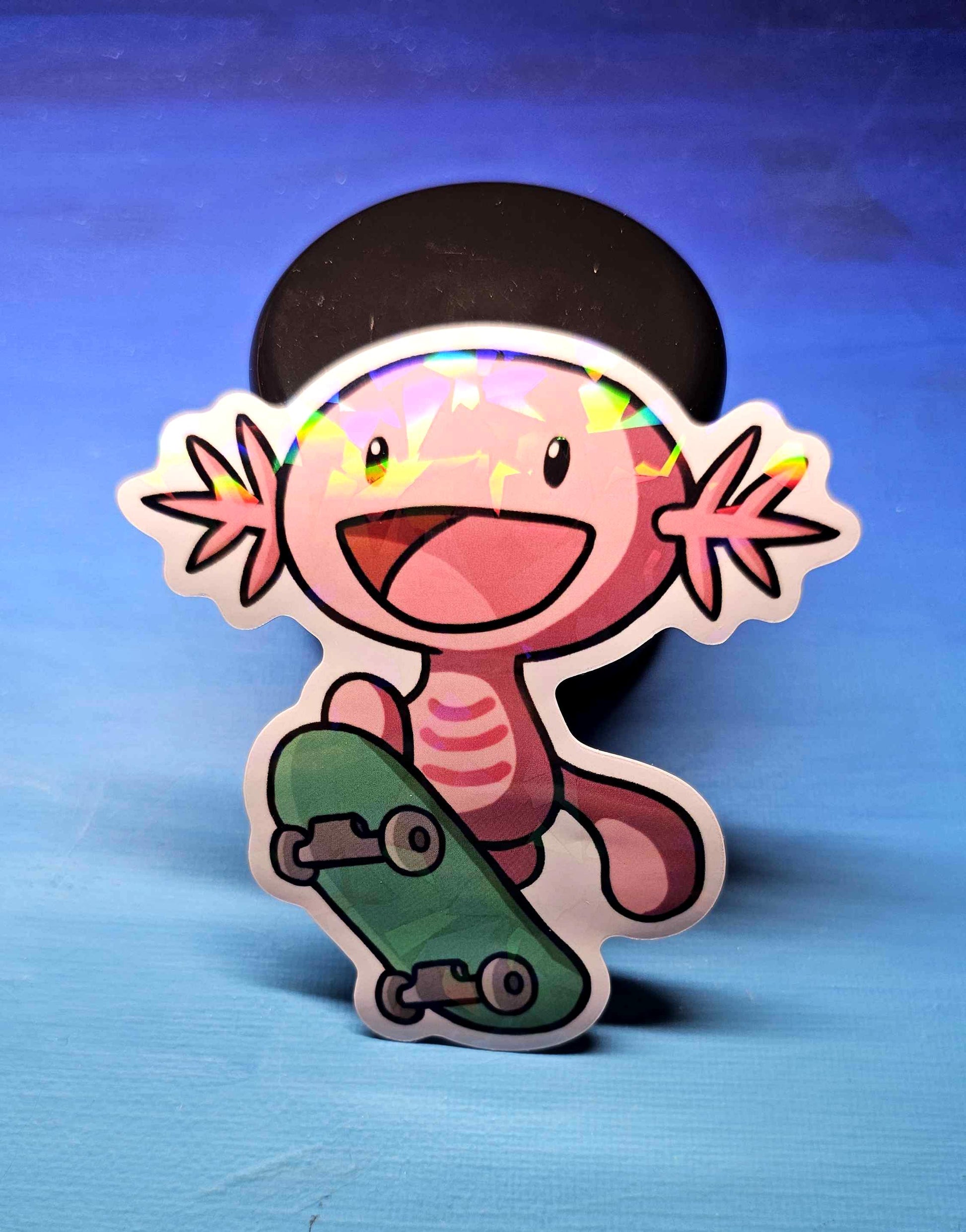 - The most famous Pokemon skater, Shiny Wooper, riding on a skateboard, as a 3" sticker, w/ a "broken glass" holo!